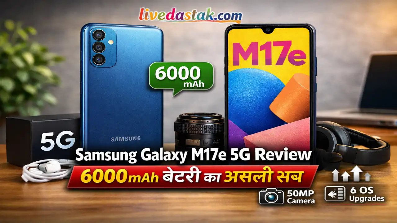 Samsung Galaxy M17e 5G: ₹11,999 में 6000mAh बैटरी — असली रिव्यू जो आपको चाहिए जब मैंने Samsung Galaxy M17e 5G को पहली बार unbox किया, तो पहला ख़याल आया — क्या ₹11,999 में इतना कुछ? 6000mAh battery। 50MP camera। 6 साल के OS updates का वादा। Samsung का नाम। बॉक्स पर लिखा हर point एक तीर की तरह सीधे budget buyer के दिल में जाता है।